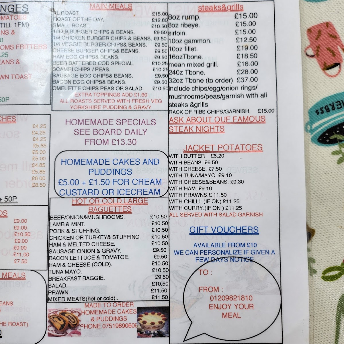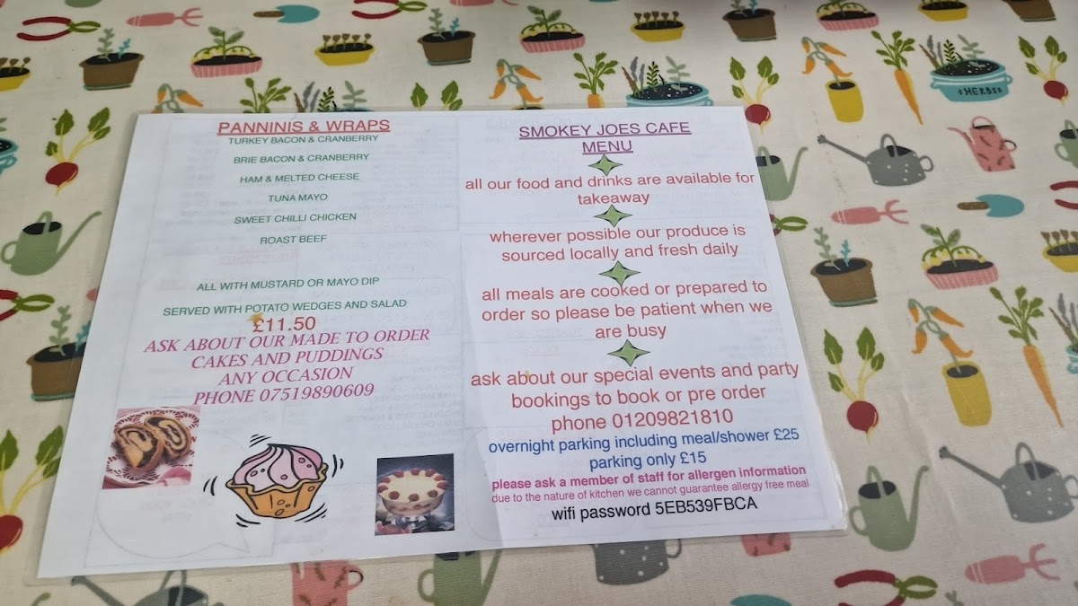 Welcome to Smokey Joes, your new go-to cafe in Redruth! With a hearty menu that promises satisfaction, it caters to all appetites with its generous portions. The breakfasts are a must-try, featuring classics like the Hungryman’s breakfast, which combines eggs, bacon, and sausage, sure to fuel your day. The hot and cold baguettes are equally enticing, with choices like the Beef Onion & Mushroom and the mouthwatering Pork & Stuffing at just £11.00.